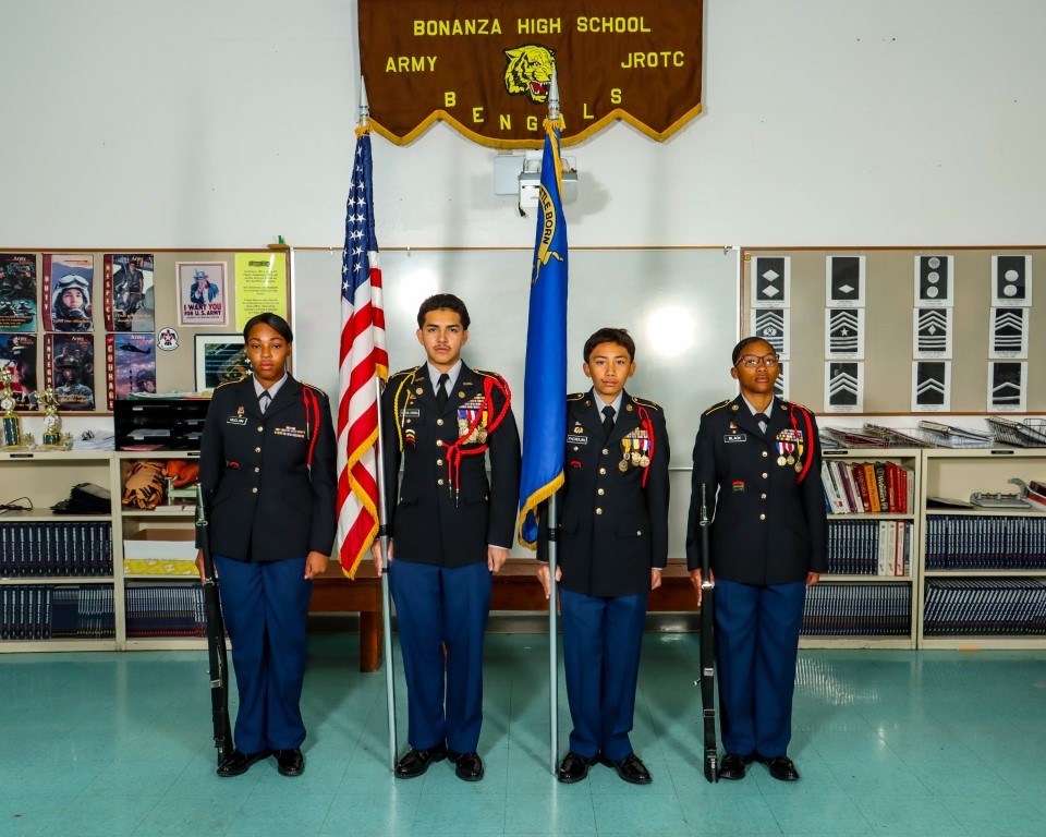Although it is not required, students have the ability to join a variety of different teams offered at bonanza. Students have the options to join the drill team, color guard team, marksmanship team, and PT team.